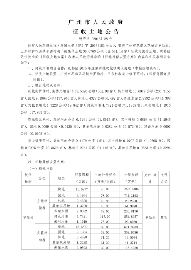 广州市人民政府征收土地公告——穗府征〔2016〕28号