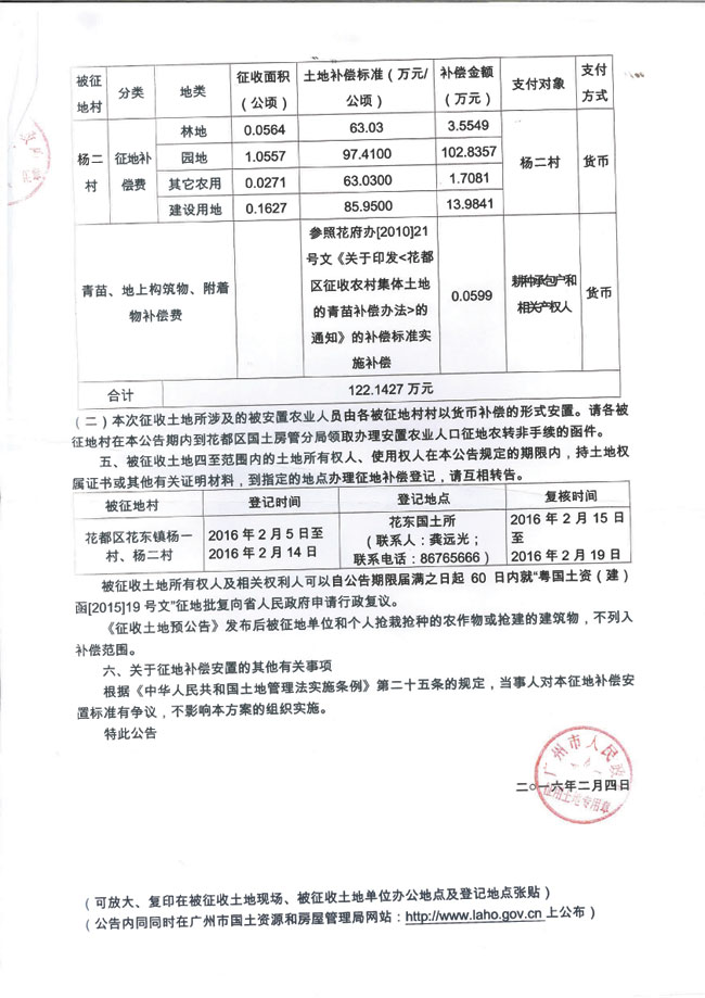 征地公告信息_广州市人民政府征收土地公告——穗府征〔2016〕4号