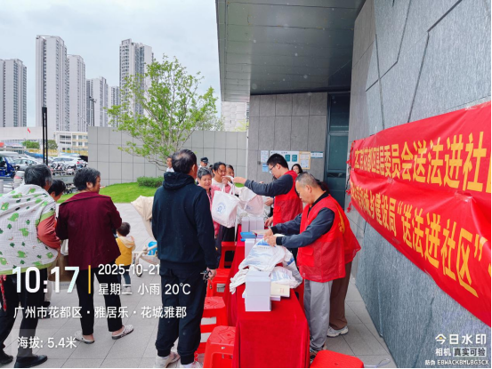 没有繁琐的开幕环节,活动直接进入“普法实战模式”。区住房城乡建设局工作人员不再局限于讲台,而是走入人群,针对居民经常通过12345热线反映的“电梯老化维修”“物业选续聘程序”“房屋渗水该谁管”等问题,工作人员展开面对面、点对点的解答,结合《中华人民共和国民法典》《广州市物业管理条例》给予清晰指引,帮助居民理清维权路径、明确责任主体。吸引了不少居民踊跃提问。同时,由于近期降雨频繁,蚊虫进入活跃期,基孔肯雅热、登革热进入高发期,区住房城乡建设局号召居民通过“清积水、灭成蚊、防叮咬”,降低疾病传播风险。为鼓励更多居民参与,本次活动准备了印有相关条文的帆布袋、纸巾等实用礼品,现场发放共600余份。